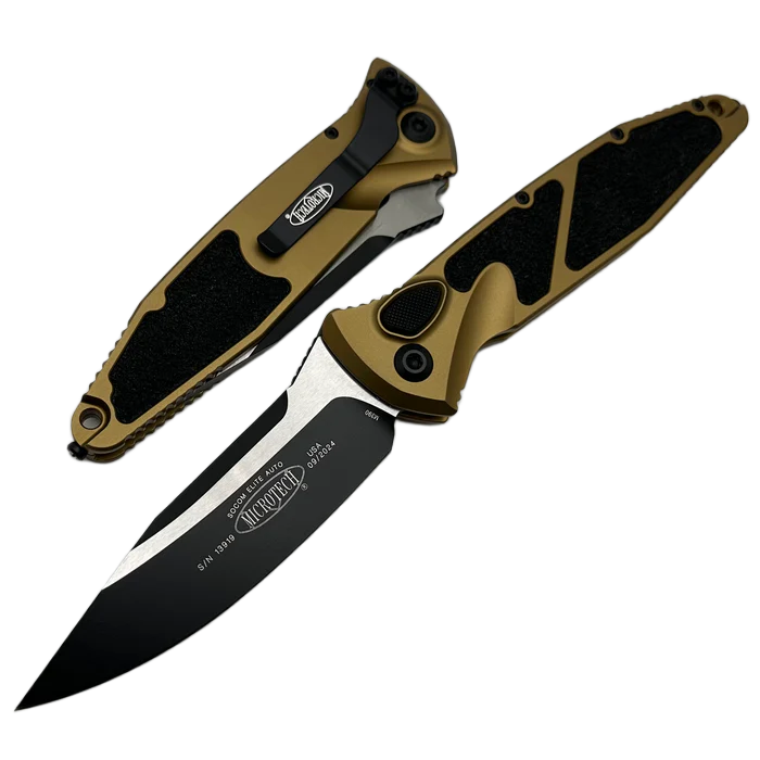 Microtech Socom Elite Auto S/E Automatic Knife Tan Aluminum, Black M390 by Tony Marfione (160A-1TA)