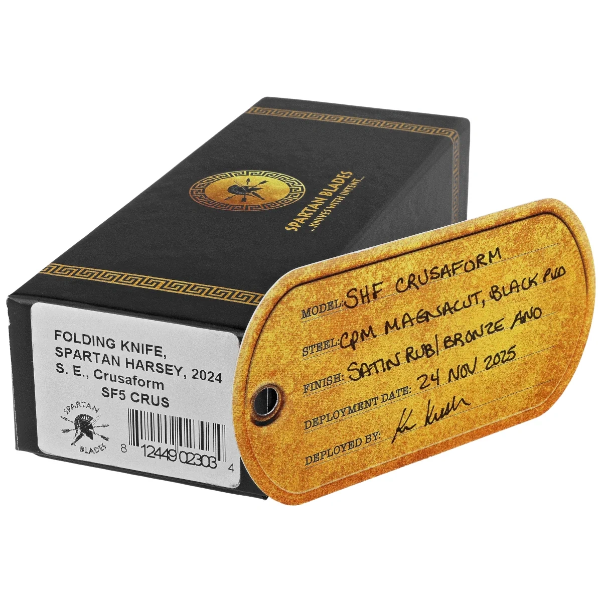 - Spartan Harsey Folder ''Crusaform'' Titanium, Black, limited edition large tactical folder designed by knifemaking legend Bill Harsey. Ergonomic titanium handle decorated with engraving, Blade made of MagnaCut steel