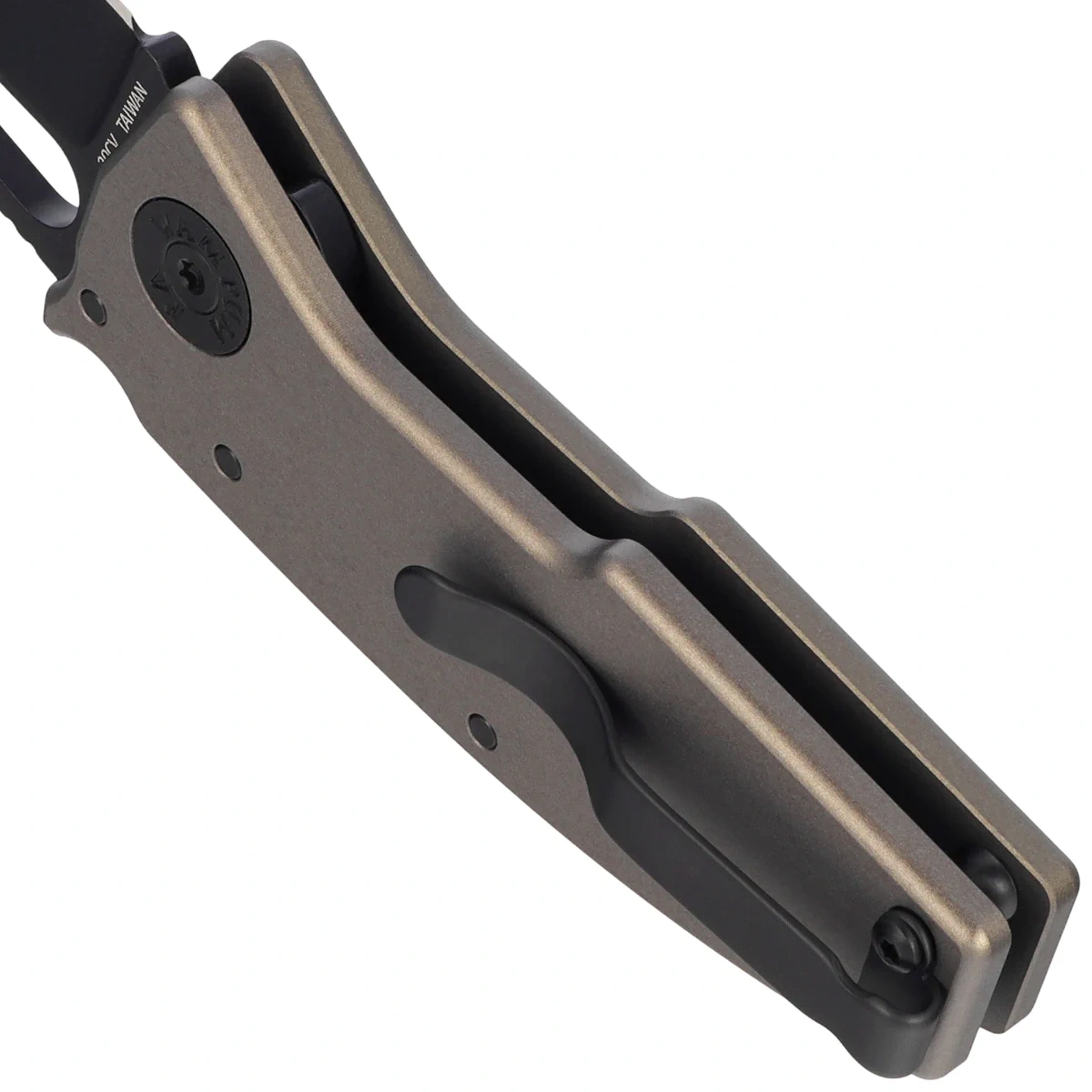Handle - grips made of aluminum, distinguished by lightness, stiffness and resistance to external conditions. The tactile texture and profiled undercuts support a secure grip, even when wearing gloves. A two-position (right/left) clip allows the knife to be carried in the tip-up position, with the tip of the blade upward. The Shark-Lock™, located at the top of the Handle, operates instantly, providing full control and safety, regardless of preferred grip or dominant hand.