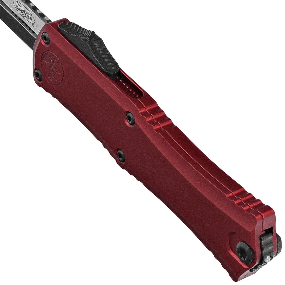 Hera II Mini Bayonet Merlot Aluminum, Black compact version of one of the best and versatile OTF (Out The Front) automatic knives equipped with a Bayonet blade . Modeled on the iconic Troodon automatic , it is a link between EDC models and typically tactical designs . The automaton, with above-average durability, operates in D/A (Double Action) mode, providing instant, strong and secure opening and closing of the blade. The model is distinguished by the excellent fit of the parts and the highest quality finish. The design is by Anthony Marfione, renowned knifemaker and owner of Microtech Knives.