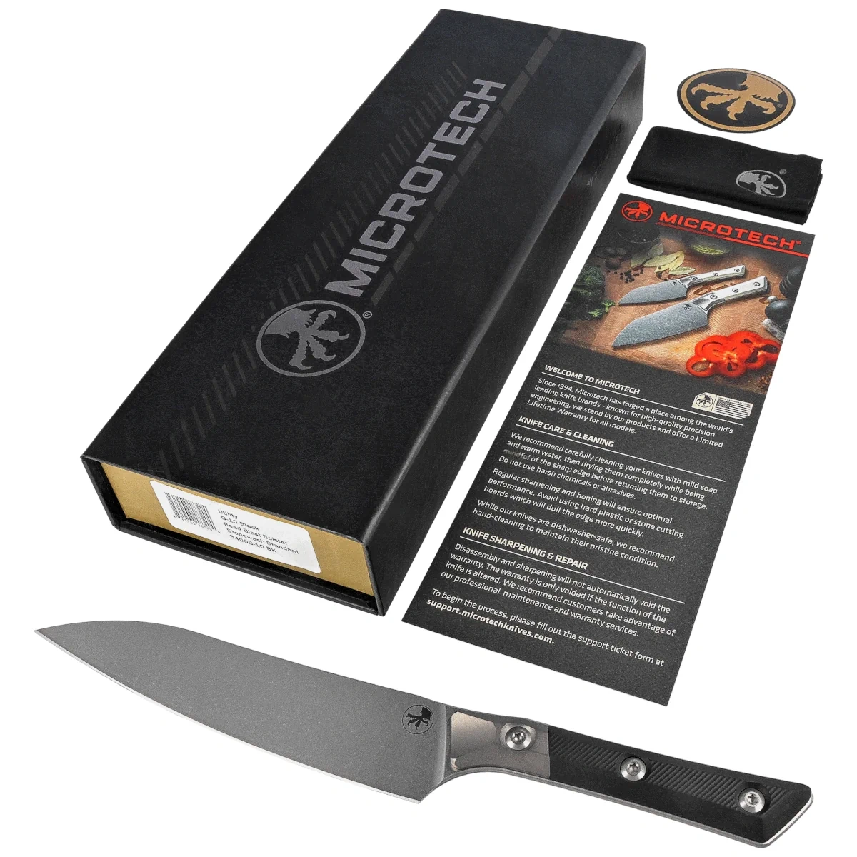 Microtech Utility Kitchen Knife Titanium Bolster/Black G10, Stonewashed MK390 (3400B-10BK)