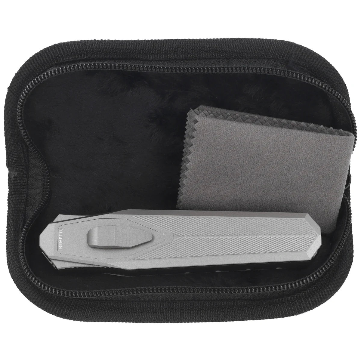 Swordfish T Gray Aluminum / Carbon Fiber, Stonewashed opening intuitive, folding knife from the Remette Knives manufactory, a display of engineering in design. Gravity, Blade extends from the front due to the force of gravity. Modeled on the design of the Luftwaffe gravity air knife, commonly known as the knife of German paratroopers. Intuitive blade ejection / retraction with one hand (under the influence of gravity) and excellent materials such as 14C28N blade steel and aluminum handle, perfectly combined with the unmatched quality of the Remette brand!