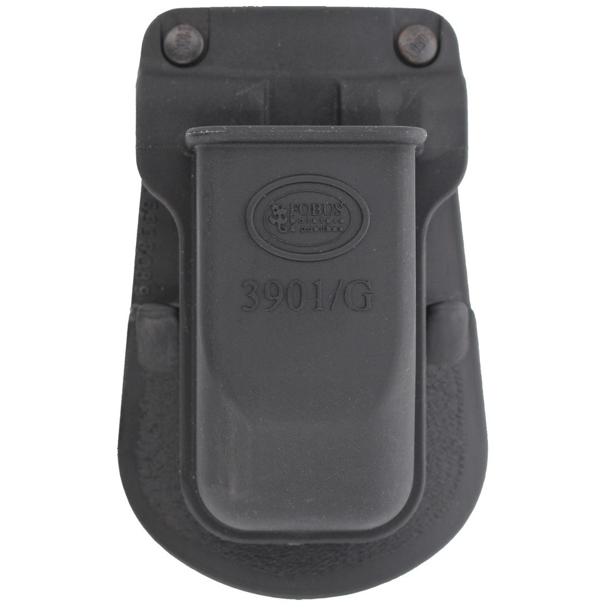 - 3901-G (Mini Paddle) ładownica pojedyncza otwarta Fobus na dwurzędowy magazynek pistoletowy kalibru 9mm i .40. Na pas o szerokości 45 mm. Do pistoletów Glock: 17, 19, 22, 23, 26, 27, 31, 32, 33, 34, 35, 37, 38 i 39. H&K: USP oraz USP Compact...