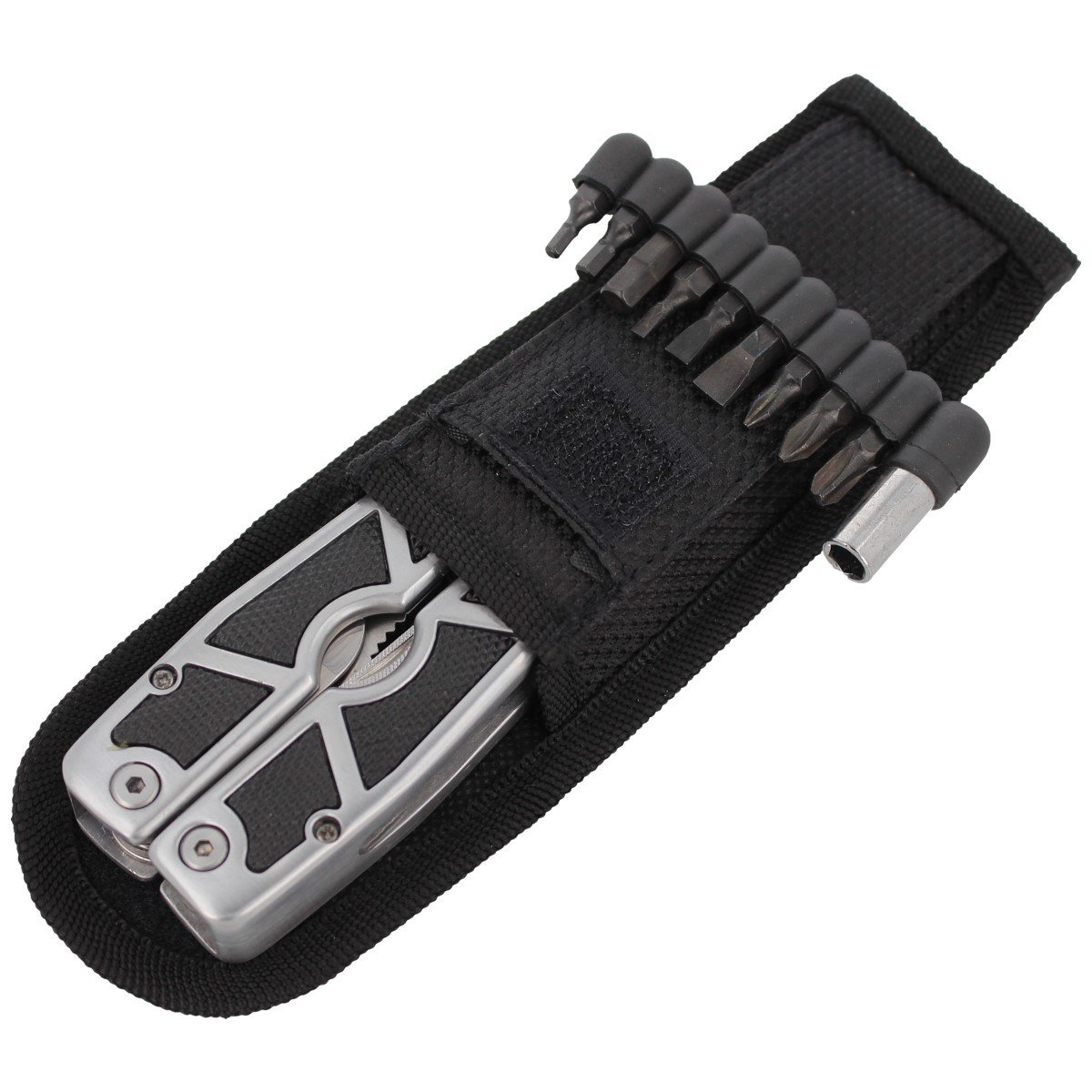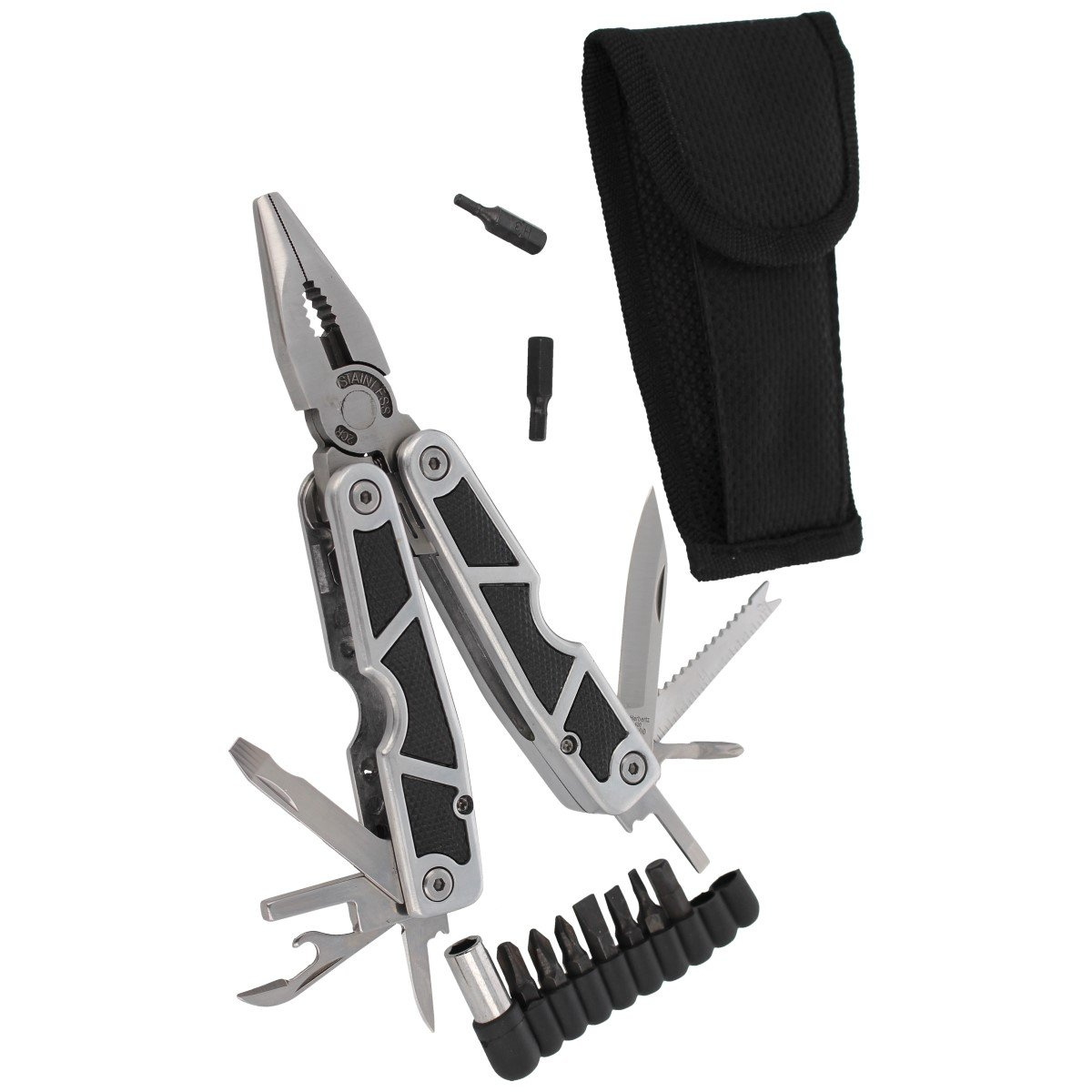 Masywny multi-tool niemieckiej marki Herbertz w doskonałej cenie! Pokryty matową nierefleksyjną satynową powłoką. Wyposażony w zestaw niezbędnych narzędzi przydatnych w wielu codziennych sytuacjach. Nylonowy pokrowiec oraz zestaw 9 bitów w komplecie.