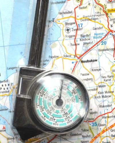 Urządzenie kartograficzne do wyznaczania odległości na tradycyjnych mapach. W łatwy sposób można wyznaczyć dystans.