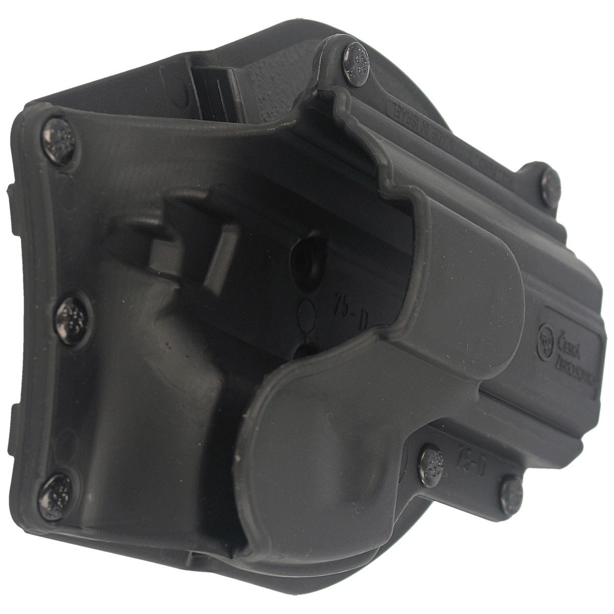 • 75D kabura zewnętrzna OWB (Outside the Waist Band) firmy Fobus, prawa. Do pistoletów Ceska Zbrojovka CZ 75D, CZ 75B, CZ SP 01, CZ 75D Compact z szyną. Canik 55 TP9 / Tri-Star T-120 9mm. Sarsilmaz Defence Full Size & Compact z szyną, Mossberg MC2C.