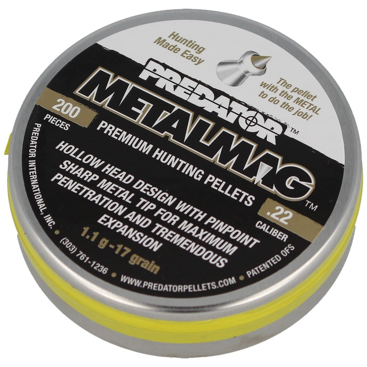 JSB Predator Metalmag .22 wyprodukowany we współpracy z amerykańskim partnerem, unikalny śrut klasy Premium Quality Hunting Pellets o bardzo dużej przebijalności w kal. 5,5 mmAmunicja charakteryzuje się innowacyjną budową, łączy wykonany z metalu ostry czubek typu Pointed (szpic) oraz ołowiany płaszcz typu Hollow (wklęsły) w jedną śrucinę. Gładki kielich bez moletowania. Opakowanie 200 sztuk.