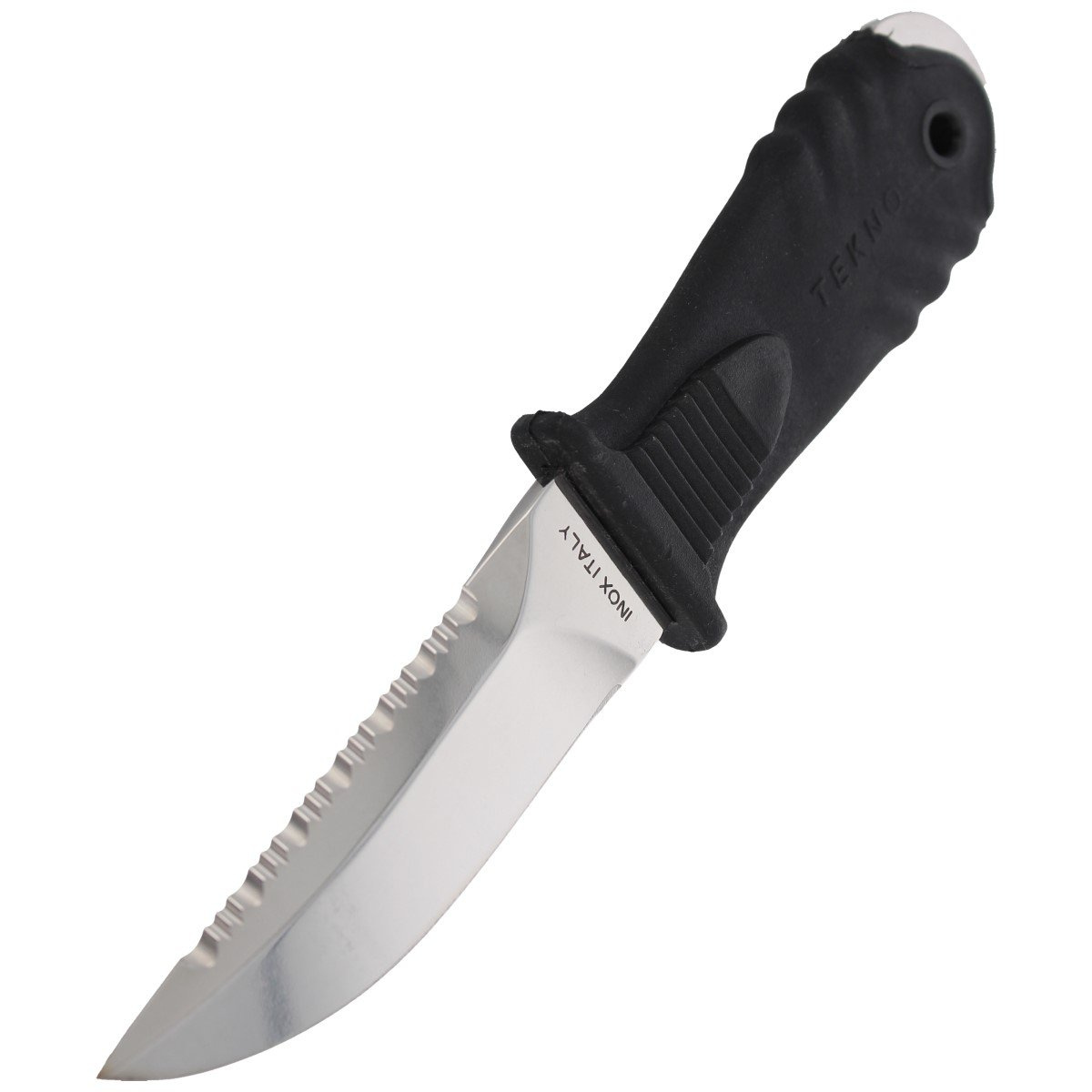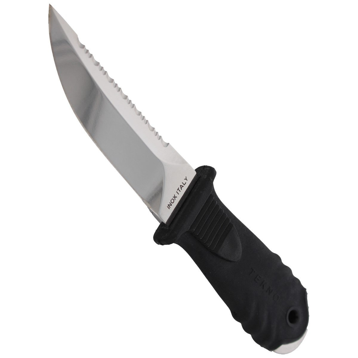 TEKNO BLACK - kompaktowy nóż dla nurka (back-up) ze stałą klingą Stainless Steel o konstrukcji full tang, wyprodukowany przez włoską firmę MAC Coltellerie. Nadaje się do prac podczas wypraw nurkowych oraz lądzie.