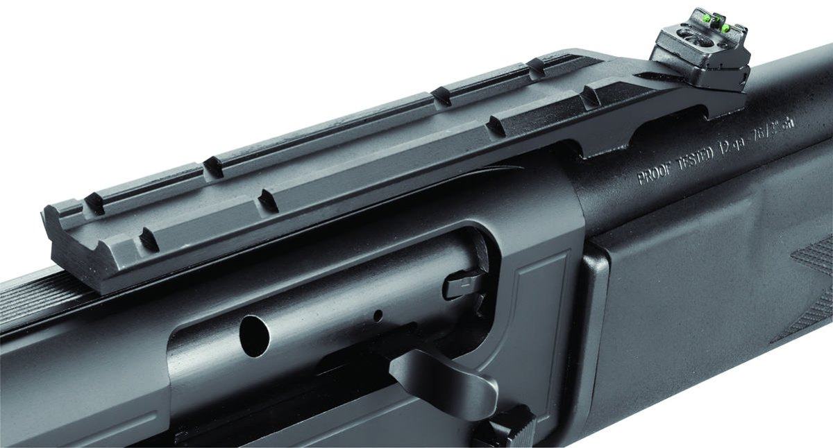 - Strzelba taktyczna, myśliwska typu semi-auto (półautomatyczna), z zestawem dwóch luf: 22" (slug) z integralną szyną montażową 22 mm oraz lufą 26" z przyrządami światłowodowymi Hiviz SparK.