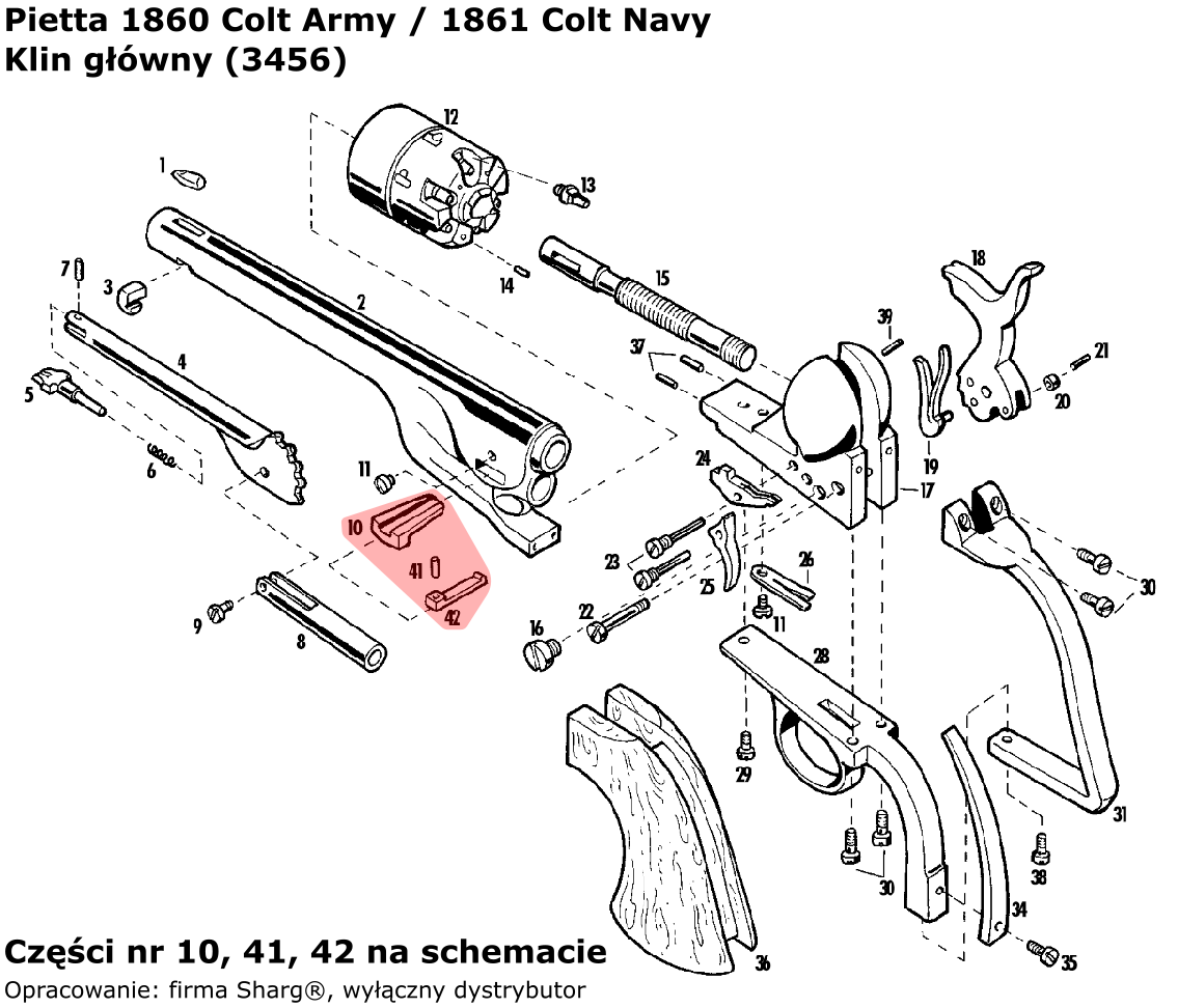 - 3456 (serwis) klin główny firmy Pietta. Do rewolwerów czarnoprochowych 1851 Colt REB Nord Navy, 1860 Colt Army oraz 1861 Colt Navy.