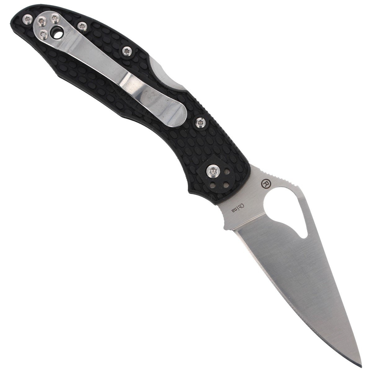Głownia - typu Drop Point zapewnia doskonałą geometrię krawędzi tnącej przy niskim tarciu. Ostrze gładkie Plain, wyprowadzono szlifem pełnym płaskim (Full Flat Grind). Karbowany fragment grzbietu głowni, rampa (jimping) ustawia kciuk oraz daje solidne podparcie, a łukowate podcięcie pod palec wskazujący między rękojeścią a krawędzią tnącą (finger choil jimpingułatwia operowanie folderem. Wycięcie w kształcie komety Comet-shaped (patent Spyderco) do szybkiego otwarcie klingi. Blokada głowni Back-Lock z zabezpieczeniem przed przypadkowym zwolnieniem blokady podczas mocnego chwytu, wycięcie w blokadzie projektu Davida Boye'a.