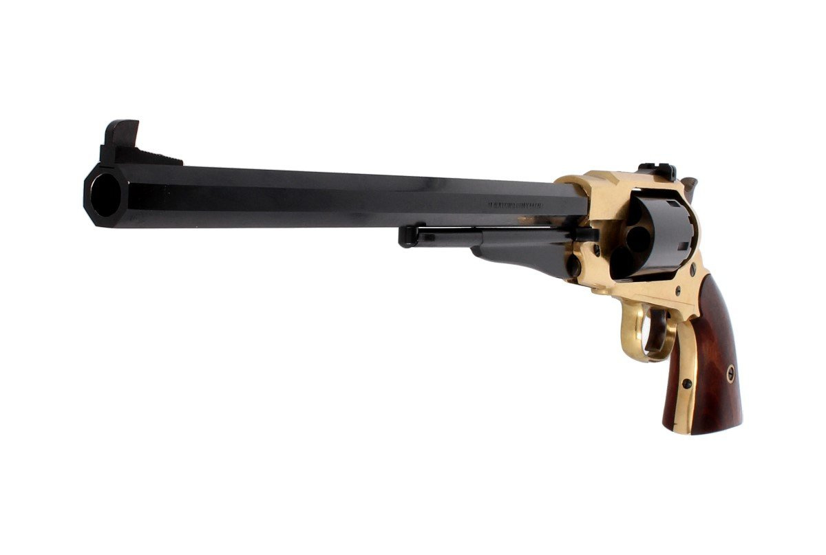 1858 Remington New Texas Buffalo .44, sześciostrzałowy kapiszonowy rewolwer czarnoprochowy ładowany odprzodowo z ramą mosiężną zamkniętą i 12" lufą.