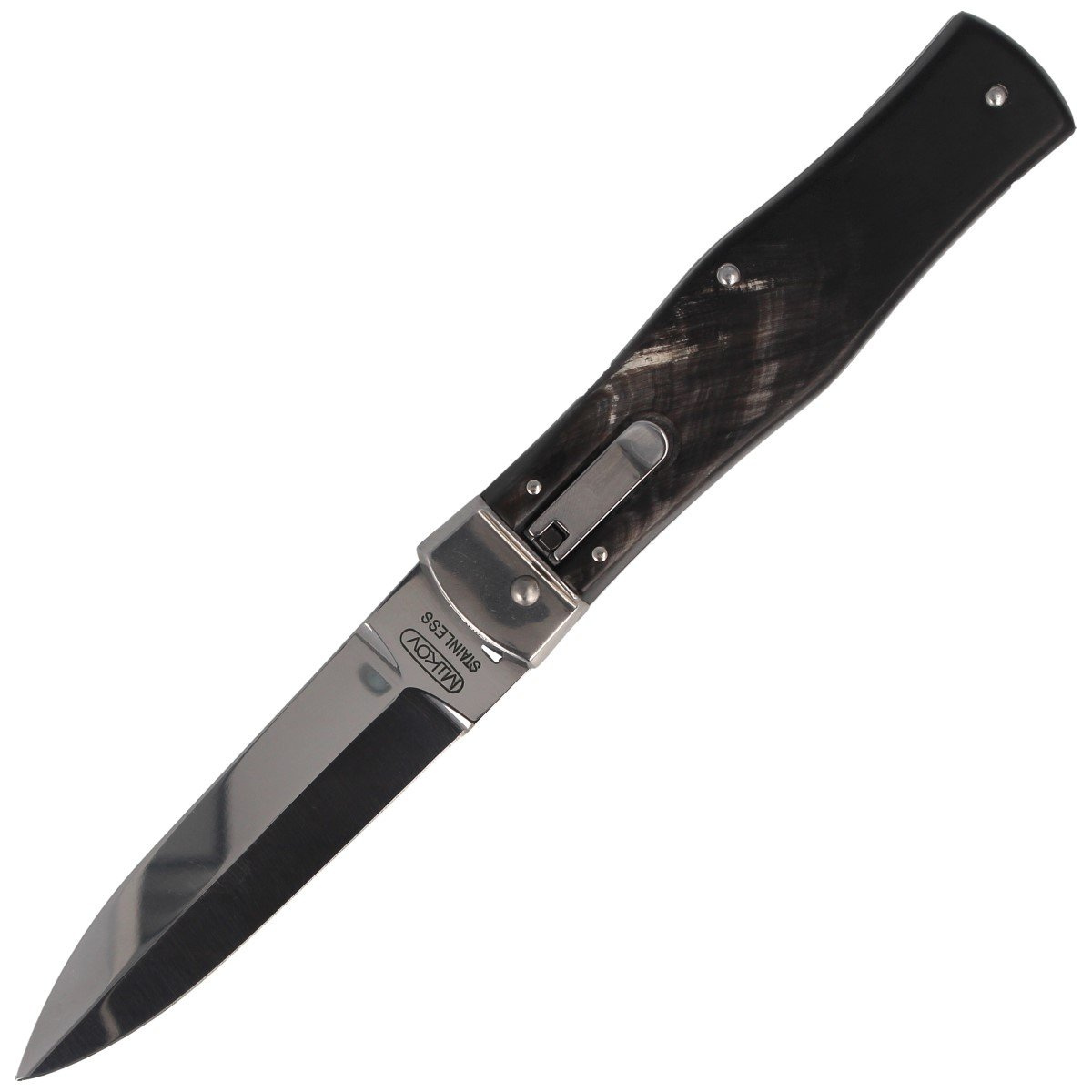 PREDATOR BUFFALO HORN, nóż automatyczny (swichblade) czeskiej firmy Mikov z Mikulasovic z okładzinami z rogu bawoła. Region ten od 1794 roku specjalizuje się w produkcji wyrobów nożowniczych, będąc nazywanym "czeskim Solingen".