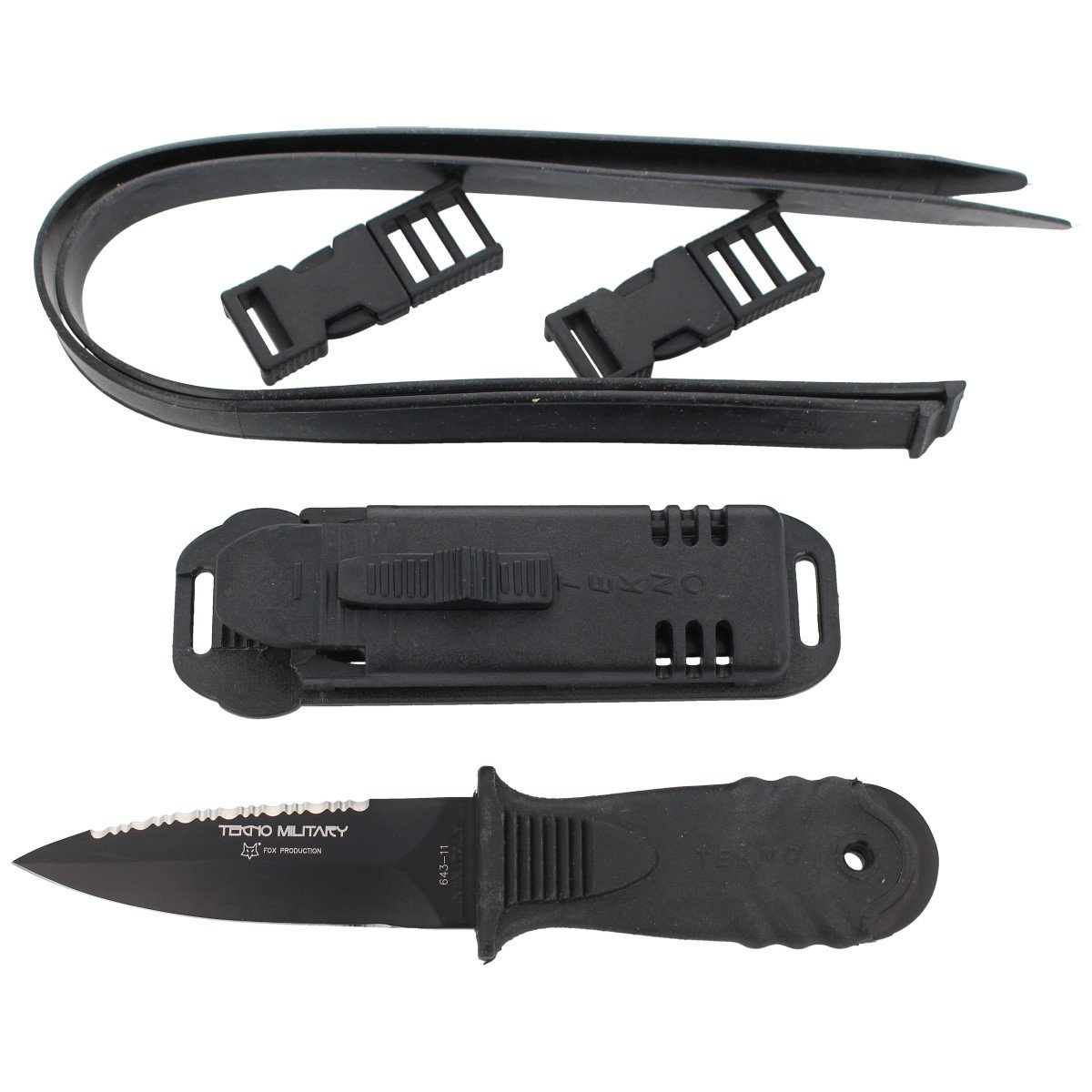 - 643/11, nóż dla nurka Tekno Military Daga o konstrukcji full tang firmy FOX. Doskonale leży w dłoni nadaje się do wykorzystania podczas wypraw nurkowych jak i na lądzie. Głownia o profilu Dagger ze stali nierdzewnej 420C pokryta powłoką Idroglider® Black.