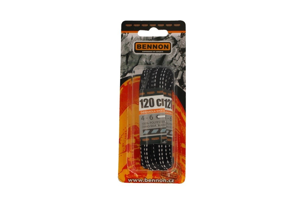 - D31120 - nie rozwiązujące się podczas noszenia sznurowadła Bennon do obuwia trekkingowego. Okrągłe, wytrzymałe sznurówki w kolorze czarno-szarym z plastykowymi końcówkami. Wykonane z odpornego na przecieranie oraz zrywanie włókna poliestrowego...