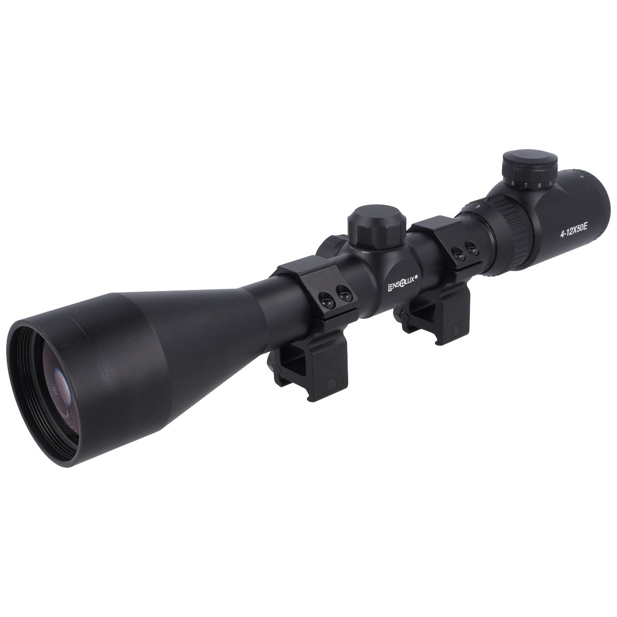 - 19435 nowej generacji luneta celownicza z podświetlanym krzyżem 4 Red-Dot marki Lensolux. Zmienne powiększenie 3-12x, średnica obiektywu 50mm. Celownik o znakomitych parametrach zmierzchowych i do celowania do mniejszych celów przy większych odległościach