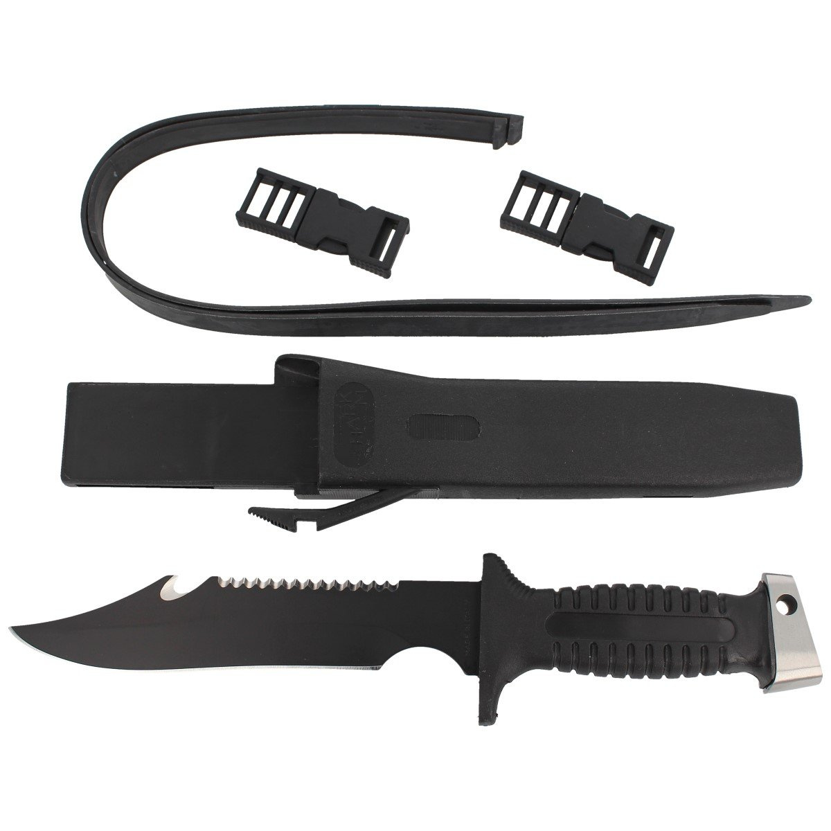 - SHARK M2, masywny uniwersalny nóż dla nurka z młotkiem włoskiej firmy MAC Coltellerie. Nieodzowny element wyposażenia podczas wypraw nurkowych. Głownia Clip Point 185 mm o dużej odporności na korozję, pokryta nierefleksyjną powłoką IDROGLIDER GOLD® Black.