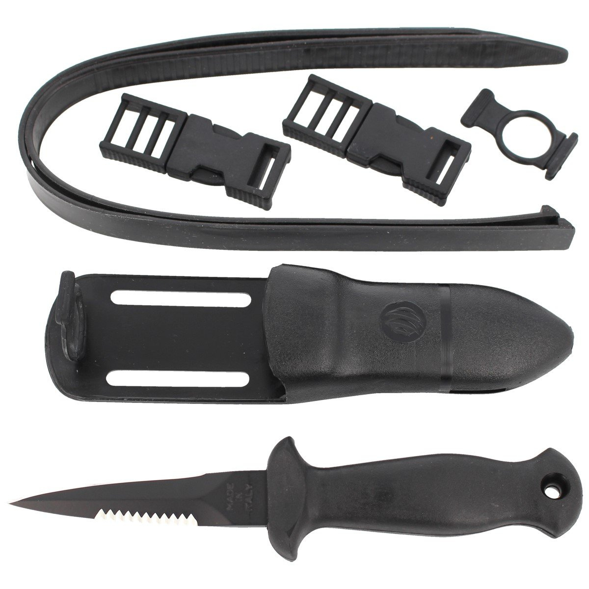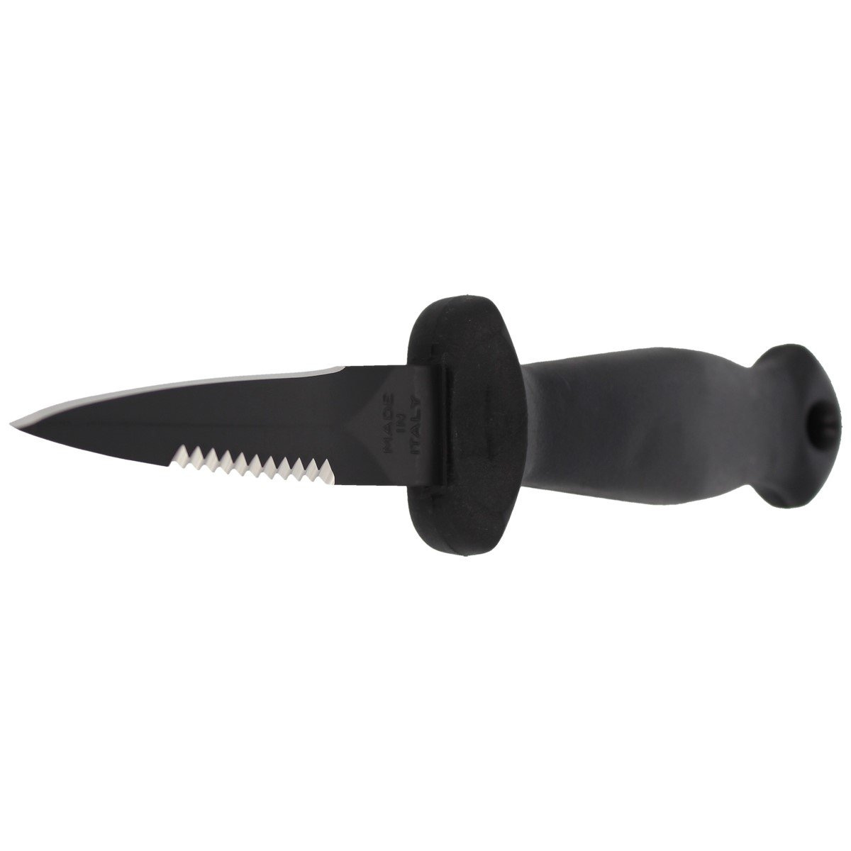 SUB 9 STILETTO BLACK 2 kompaktowy nóż dla nurka (back-up) o konstrukcji full tang ze stałą klingą pokrytą czarną matową powłoką Wyprodukowany przez włoską firmę MAC Coltellerie. Nadaje się do wykorzystania podczas wypraw nurkowych oraz na lądzie.