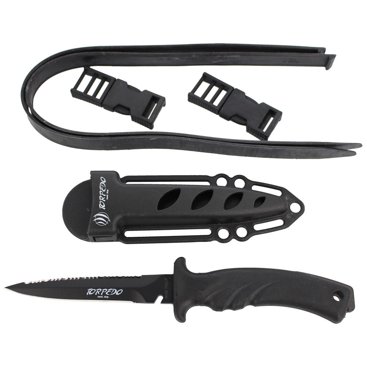 TORPEDO 11 BE BLACK, nóż dla nurka (back-up) ze stałą klingą pokrytą czarną matową powłoką. Wyprodukowany przez włoską firmę MAC Coltellerie. Nieodzowny element wyposażenia każdej wyprawy nurkowej.