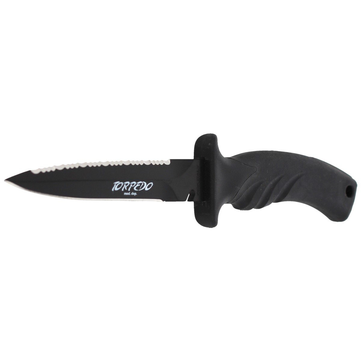 - TORPEDO11 BE BLACK, doskonały nóż nurkowy (back-up) firmy MAC. Nieodzowny element wyposażenia każdej wyprawy nurkowej. Głownia dagger ze stali nierdzewnej W 1.4116 o dużej odporności na korozję, pokryta nierefleksyjną powłoką IDROGLIDER GOLD® Black.