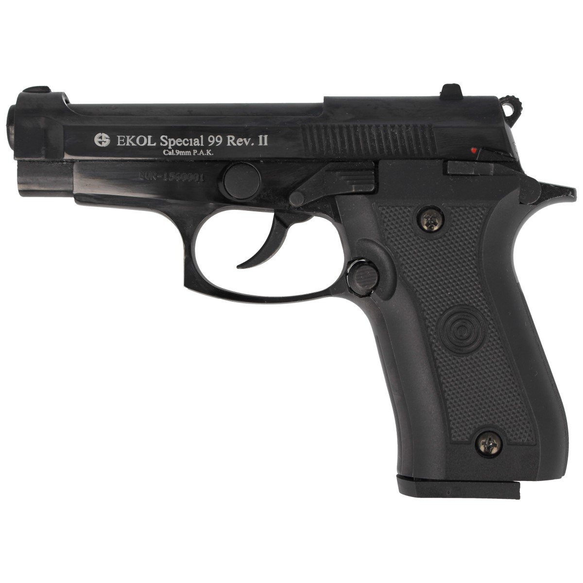 Special 99 Rev II, pistolet alarmowy na amunicję hukową centralnego zapłonu w kal. 9 mm P.A.K. Nabój hukowy w kalibrze 9 mm, daje realistyczny huk wystrzału lepszy niż kapiszony kal. 6 mm (short lub long). Pistolet Special 99 Rev II to urządzenie do samoobrony skutecznie odstraszające potencjalnych napastników. Pistolet mimo, że jest bronią alarmową jest też idealny do prowadzenia treningu strzeleckiego (obsługa broni, czynność oddania strzału) z uwagi na odwzorowane szczegółów i mechanizmów broni ostrej (ruchomy zamek i inne elementy broni).