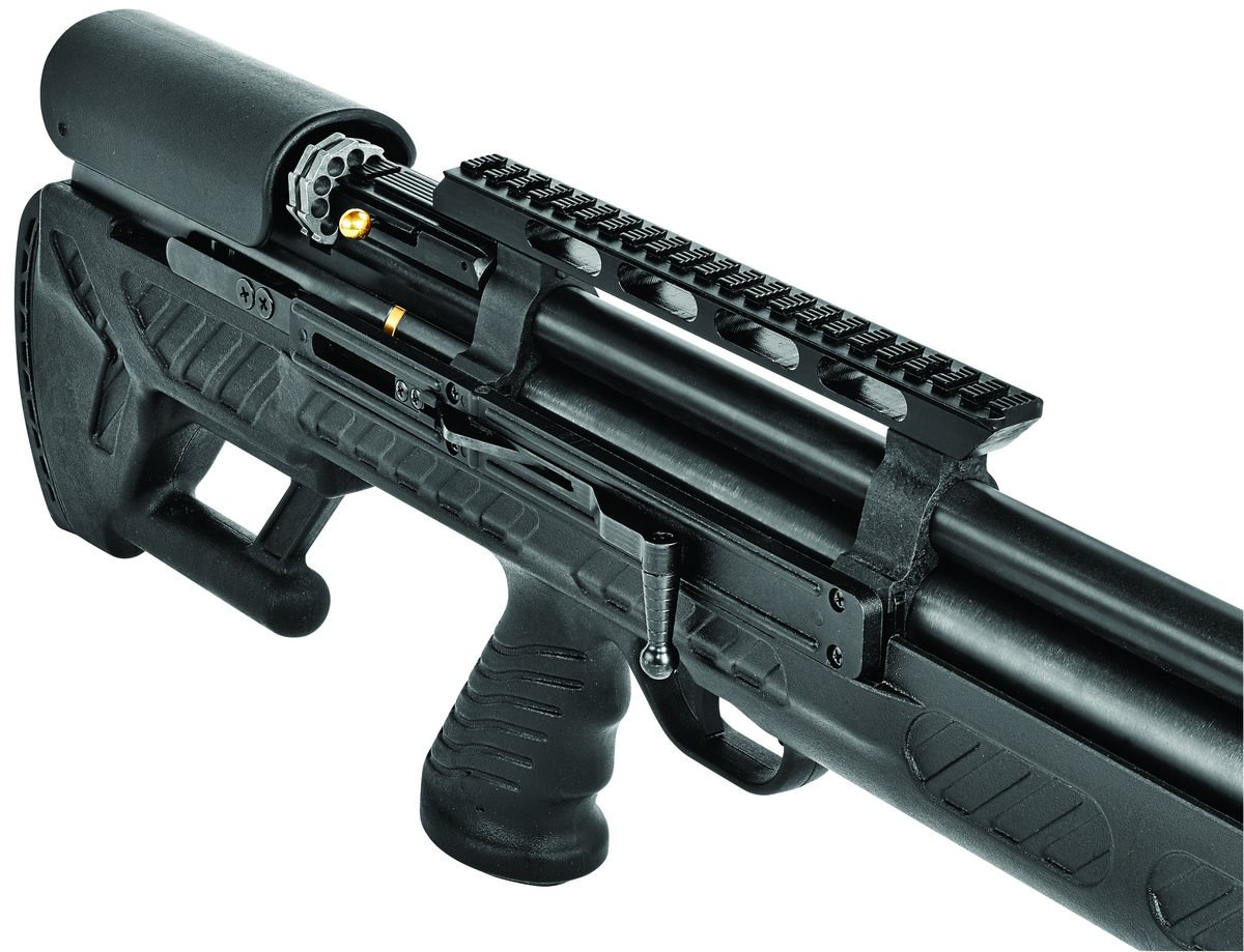 Magazynki - wymienne, obrotowe. W zależności od kalibru oferowane są aluminiowe 10-strzałowe (kal. 4.5 mm i 5.5 mm) lub stalowe 9-strzałowe (kal. 6.35 mm). Przeładowanie odbywa się przy pomocy dwutaktowej dźwigni side lever action znajdującej się po prawej stronie karabinu. Powoduje naciągnięcie „kurka”, obrócenie magazynka i wprowadzenie nowego śrutu do komory lufy. W zestawie dwa magazynki.