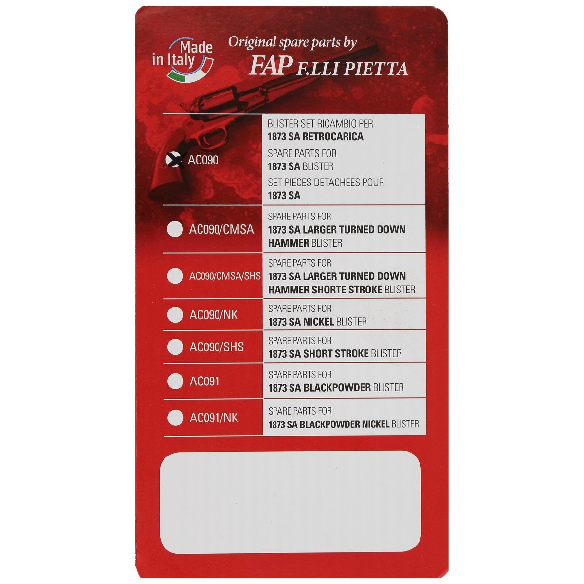 - AC090 (serwis), zestaw niezbędnych części eksploatacyjnych do kapiszonowych rewolwerów czarnoprochowych 1858 Colt Peacemaker Single Action .44 cal firmy Pietta Arms.