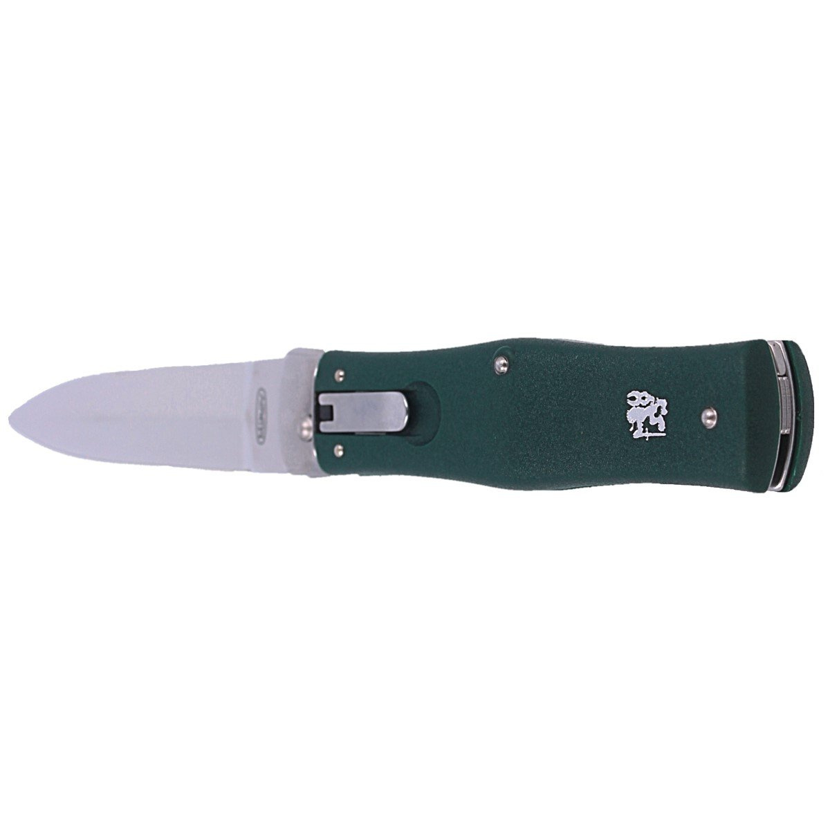 Predator ABS Green z klipsem, nóż automatyczny typu swichblade czeskiej firmy Mikov z Mikulasovic z klipsem i okładzinami z ABS w militarnym zielonym kolorze. Region ten od 1794 roku specjalizuje się w produkcji wyrobów nożowniczych, będąc nazywanym "czeskim Solingen".