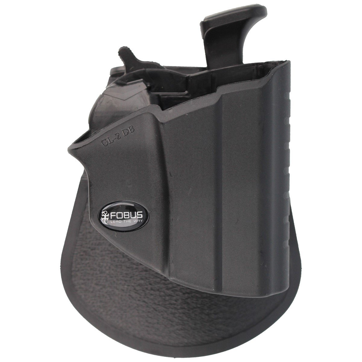 - GL-2 DB (Roto) kabura otwarta Fobus typ DB, prawa. Do pistoletów Glock: 17, 19, 22, 23, 31, 32, 34, 35. Mechanizm Thumb Release (blokada zatrzasku kabłąka) i manualny bezpiecznik Level II Safety rozwiązują problem bezpiecznego przenoszenia broni w kaburze