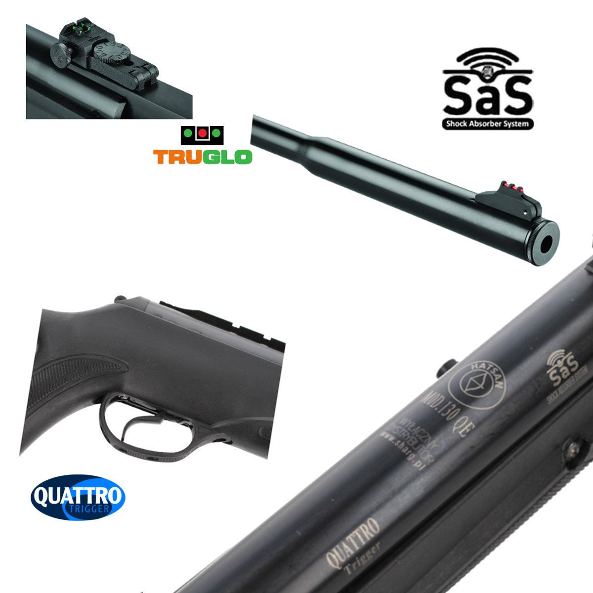 • SaS™ (Shock Absorber System)  - system absorpcji wstrząsów, osłabia odrzut. Pochłania wibrację powstałe podczas wystrzału w karabinach sprężynowych. SaS™ wydłuża trwałość wiatrówki oraz redukuje niekorzystne działanie na zamocowany celownik optyczny.