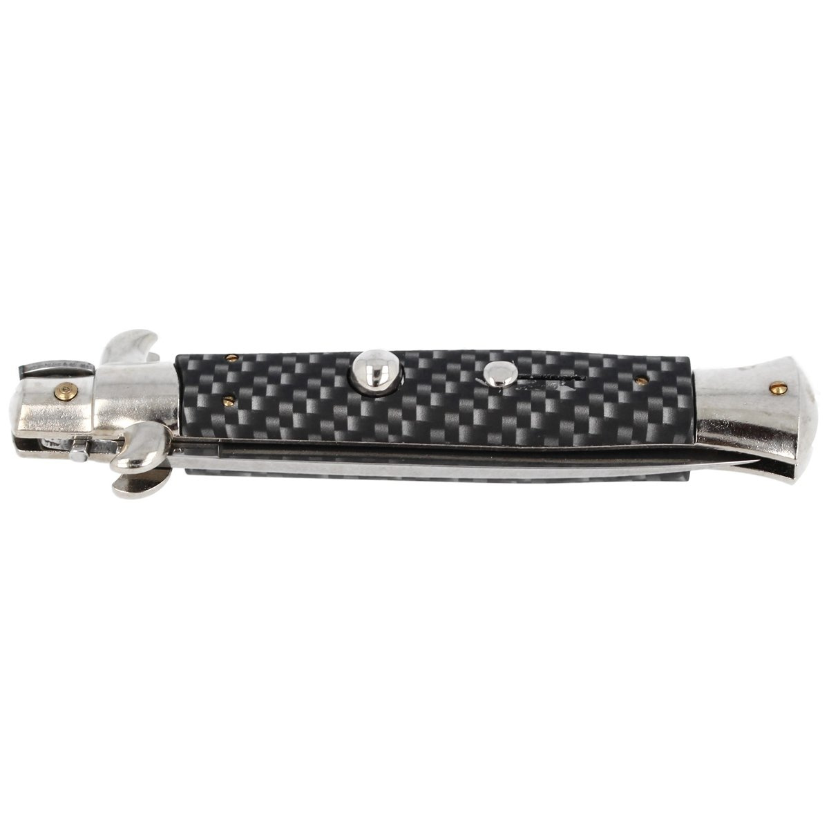 - Switch Italian Stiletto Kevlar Dagger 23cm tradycyjny włoski nóż sprężynowy, rękojeść Kevlar Look. Otwarcie klingi musi odbyć w ciągu setnych sekundy. Ręcznie wykonany z zasadami włoskiego rzemiosła. Noże z manufaktury Frank Beltrame sławne na świecie.