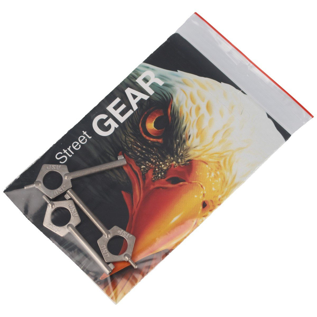 - 56523-3 komplet 3 szt. uniwersalnych kluczyków Pentagon firmy ASP. Pasują do większości metalowych kajdanek zapadkowych (szczękowych) używanych przez służby mundurowe, agencje ochrony, policję. Wyposażone w trzpień do wciskania mechanizmu blokady kajdanek