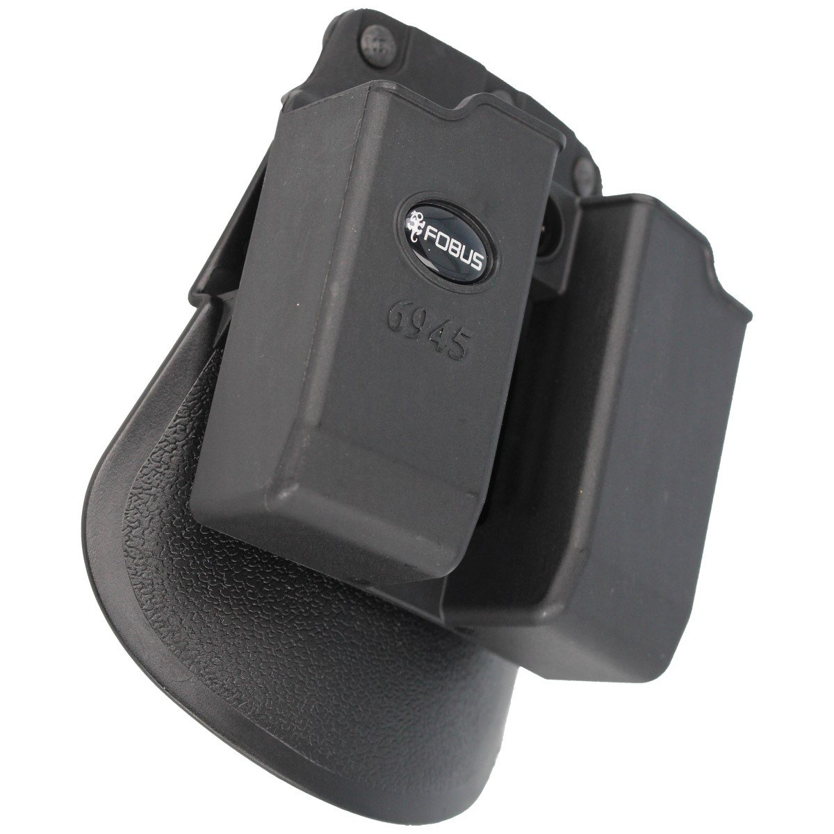 6945 (Paddle), ładownica typu otwartego firmy Fobus na dwa dwurzędowe magazynki pistoletowe w kalibrze .45 do pistoletu typu S&W, Springfield, H&K, Walther, FN, nie pasuje do pistoletu Glock. Uchwyt wykonano metodą wtryskową z odpornego na zarysowania, udar oraz ekstremalne temperatury tworzywa sztucznego o dużej gęstości.