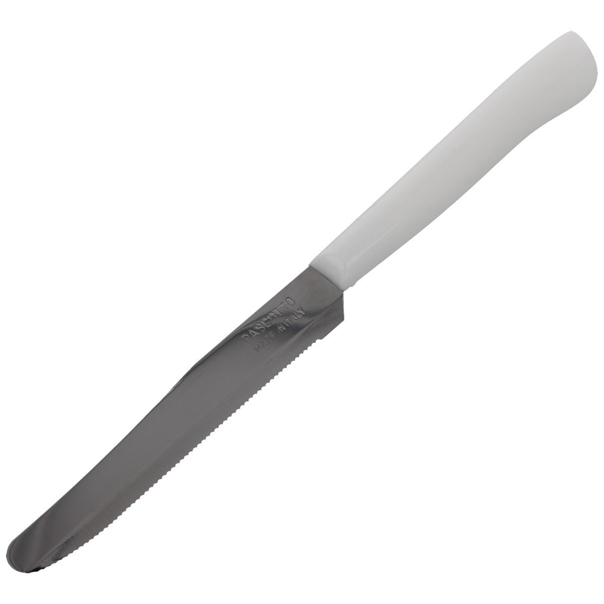 PV 208 TUBO-12/WH (White) - 12 elementowy komplet uniwersalnych ząbkowanych noży kuchennych włoskiej marki DOI LEONS w doskonałej cenie! Seria Arlecchini to kolekcja zaprojektowana do codziennego użytku. Niezbędne w każdej kuchni ostrza o ostrych krawędziach ułatwiają wszelkie prace kuchenne. Sprawdzają się jako noże stołowe, śniadaniowe oraz na piknik. Made in Italy.