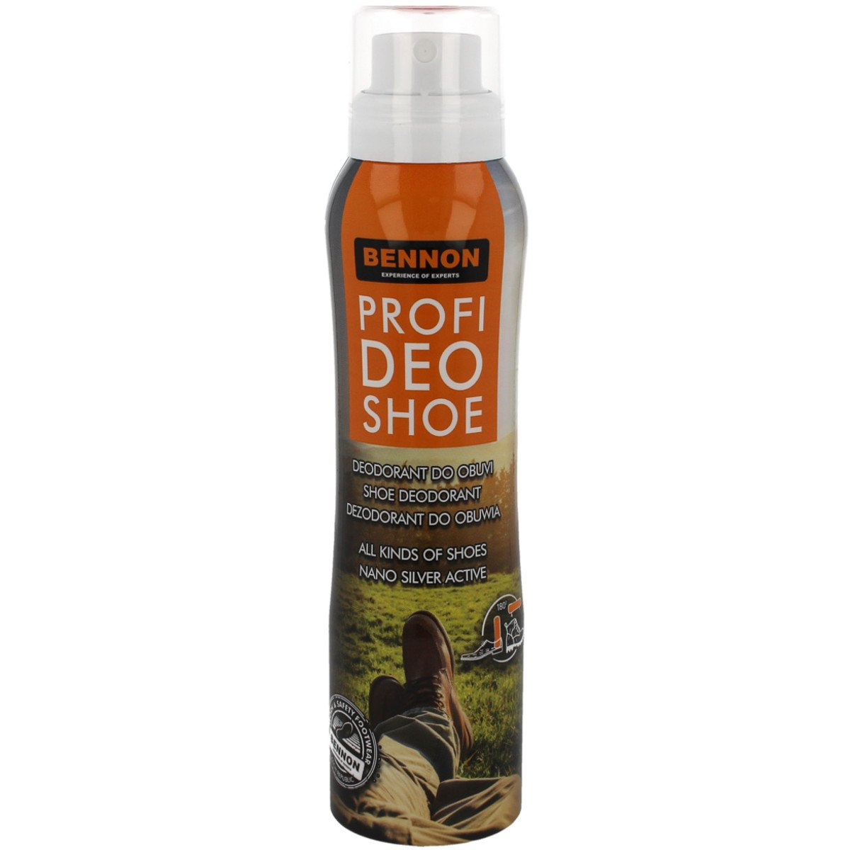 BNN PROFI DEO SHOE 150 ml, dezodorant do obuwia marki Bennon z nanocząsteczkami srebra oraz dwutlenkiem krzemu. Znacznie dłużej niż tradycyjne dezodoranty utrzymuje świeżość obuwia oraz chroni przed nieprzyjemnym zapachem. Srebro zapobiega rozwojowi drobnoustrojów (mikroorganizmów) a dwutlenek krzemu (krzemionka) pochłania nieprzyjemny zapach.