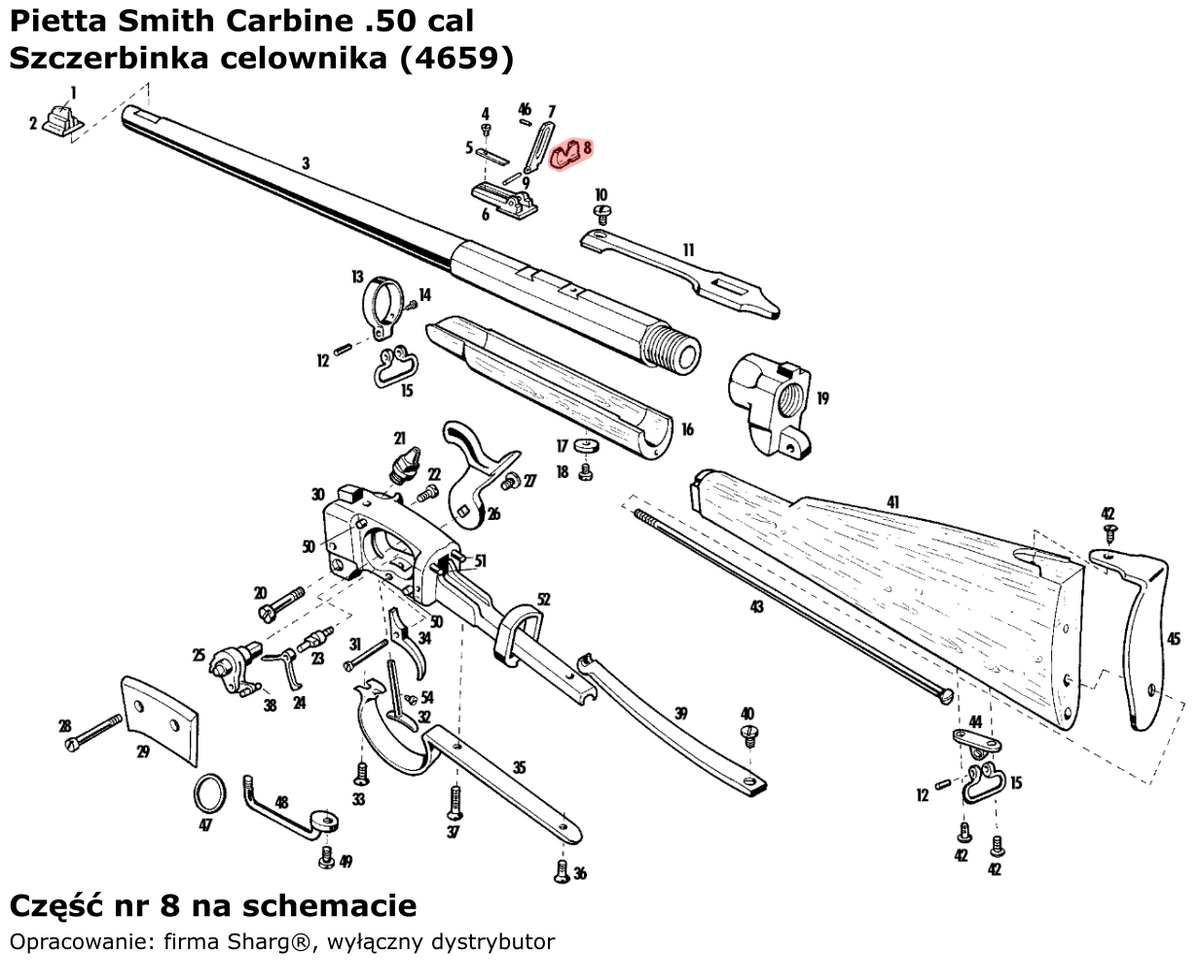 - 4659 (serwis) szczerbinka celownika włoskiej firmy Pietta. Pasuje do karabinów czarnoprochowych Smith Carbine Cavalry (SMT50) oraz Smith Carbine Artillery (SMTA50).