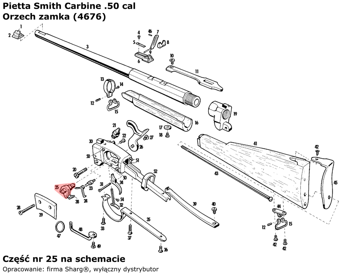 • 4676 (serwis) orzech zamka / tumbler włoskiej firmy Pietta do karabinów czarnoprochowych Smith Carbine Cavalry (SMT50) oraz Smith Carbine Artillery (SMTA50).