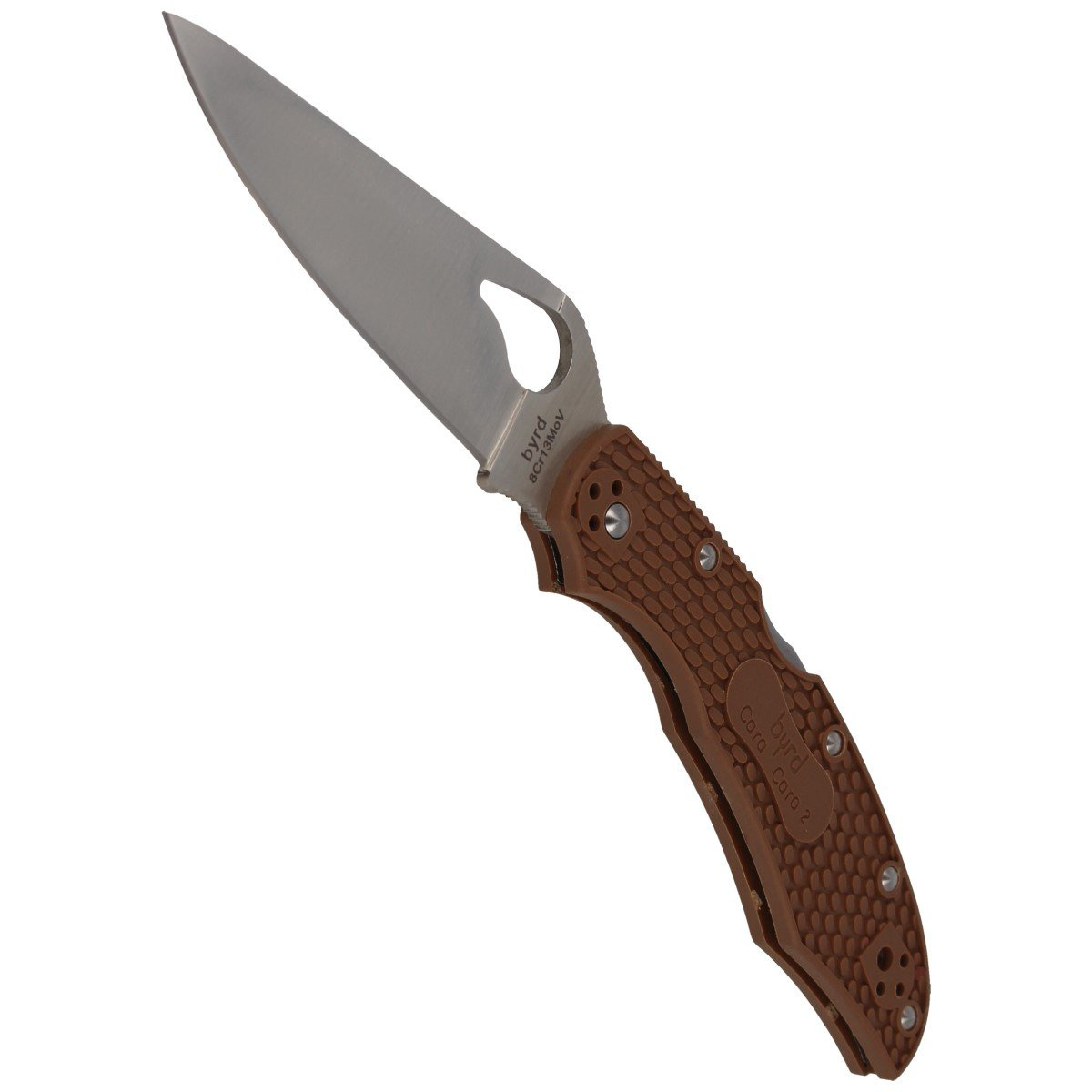- Byrd Cara Cara 2 FRN Brown zainspirowany kultowym nożem Endura niedrogi, folder Spyderco z okładkami w modnym brązowym kolorze. Ostrze gładkie Plain ze stali nierdzewnej 8Cr13MoV wyprowadzono szlifem pełnym płaskim. Rękojeść FRN, Bi-Directional Texturing.