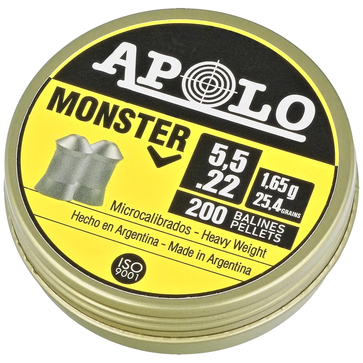 Monster .22 uważany za śrut numer 1 przez posiadaczy mocnych wiatrówek. Ciężki nadkalibrowy (lepiej wypełnia przewód lufy, mocniej podkręca się na gwincie, uzyskuje większy zasięg) śrut w kalibrze 5.52 mm z zaokrąglonym czołem typu Round. Dzięki kształtowi śrucin uzyskano lepszą precyzję oraz celność. Wagę dobrano tak, że amunicja sprawdza się w najmocniejszych wiatrówkach FAC (bez limitu energii). Opakowanie 200 szt.