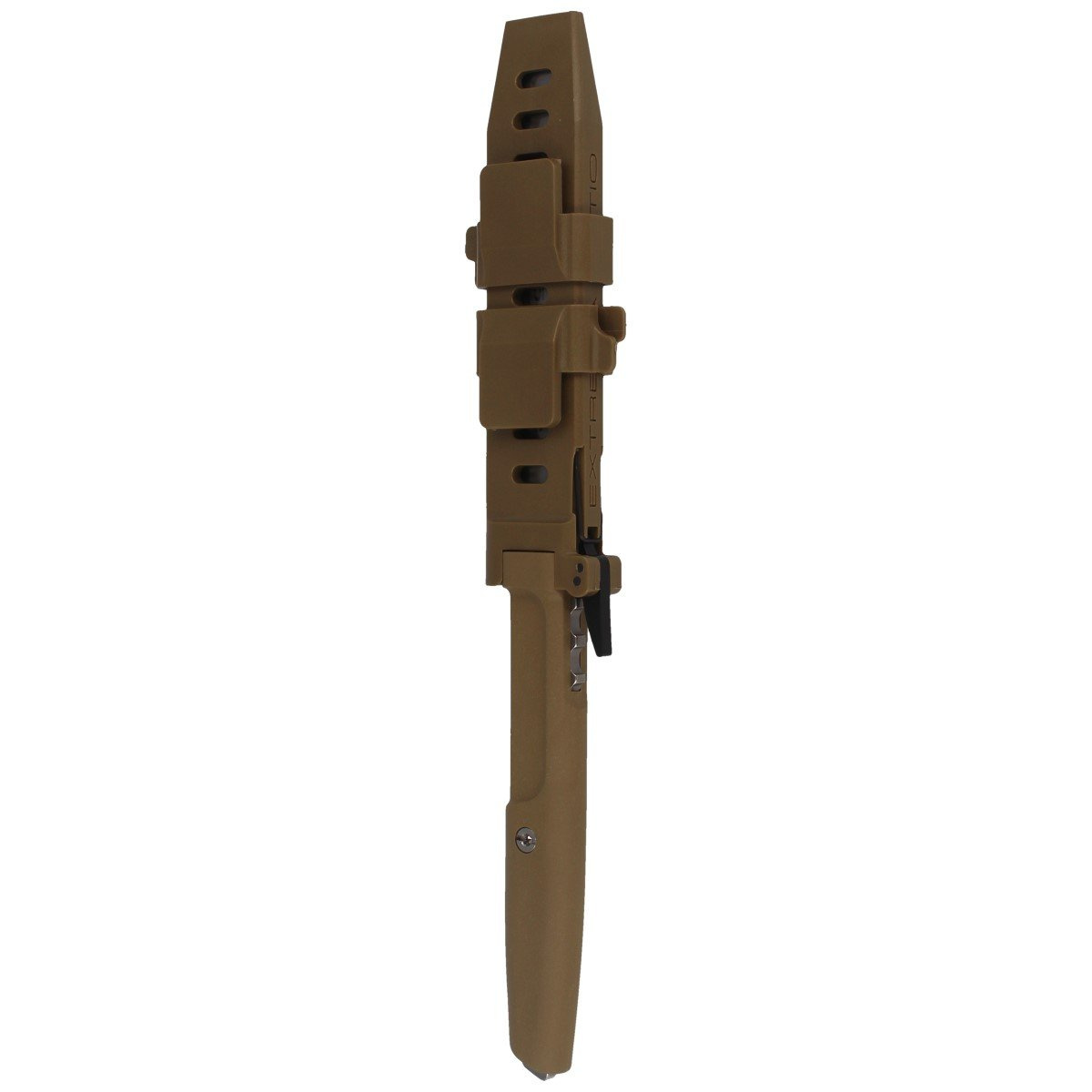 Rękojeść - w kolorze HCS (Hybrid Coyote Sage), pokryta okładziną o własnościach gumo-podobnych. Wykonana z antypoślizgowego elastomeru termoplastycznego Forprene (elastyczny powrót, miękkość, odporność na działanie środków chemicznych), zapewnia pewny uchwyt również mokrymi dłońmi. Stalowa głowica może pełnić funkcję młotka / zbijaka do bicia szyb i nie tylko...