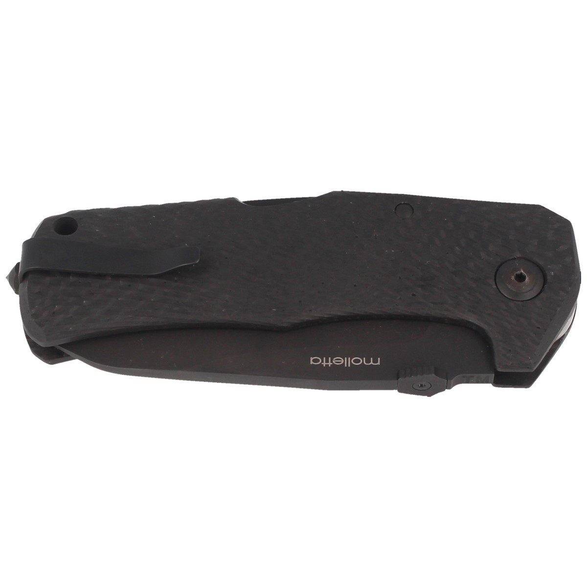 TM1 Carbon Fiber, Black Blade nóż składany E.D.C. włoskiej manufaktury LionSteel w technologii Solid® Knife. Lekki, mocny oraz łatwy w przenoszeniu. Jedyny folder z technologią Solid wyposażony w blokadę Back-Lock, był nie lada wyzwaniem, biorąc pod uwagę zastosowanie włókna węglowego do monolitycznej, jednoczęściowej konstrukcji rękojeści.
