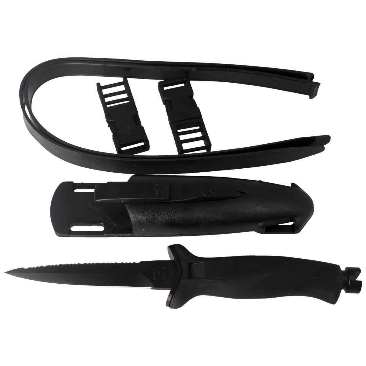 Pochwa - wykonane z tworzywa ABS z otworami do odprowadzania wody, wilgoci. Kaburę wyposażono w zatrzask z blokadą zabezpieczający przed wysunięciem się noża w wodzie. Do pochwy dołączono dwa gumowe pasy oraz 2 klamry z tworzywa umożliwiające zamocowanie etui do ręki, nogi lub do kamizelki.