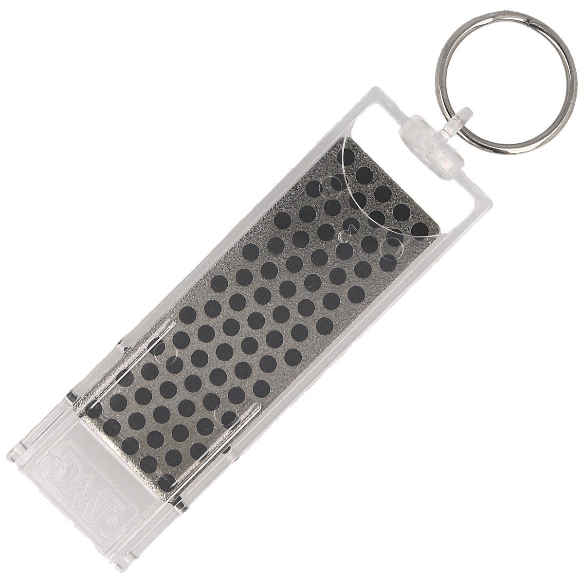 - F70X, kieszonkowa ostrzarka diamentowa amerykańskiej firmy DMT. Płytkę pokryto diamentowym nasypem o gradacji Extra Coarse 220 (czarna). Bardzo szorstka do naprawy uszkodzonych ostrzy lub ostrzenia mocno stępionych krawędzi tnących noży, nożyczek, dłut.