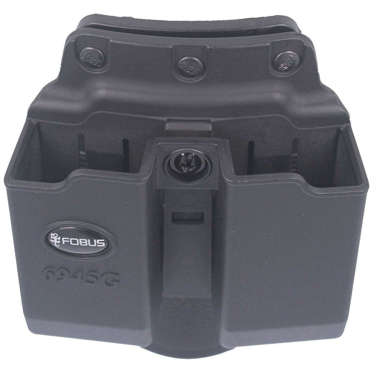 - 6945G RT (Roto) ładownica typu otwartego firmy Fobus na dwa dwurzędowe magazynki pistoletowe w kalibrze .45 do pistoletu Glock. Mocowanie P (Paddle) płetwa na pas o szerokości do 45mm. Zaprojektowana aby jak najbliżej przylegać do sylwetki / umundurowania