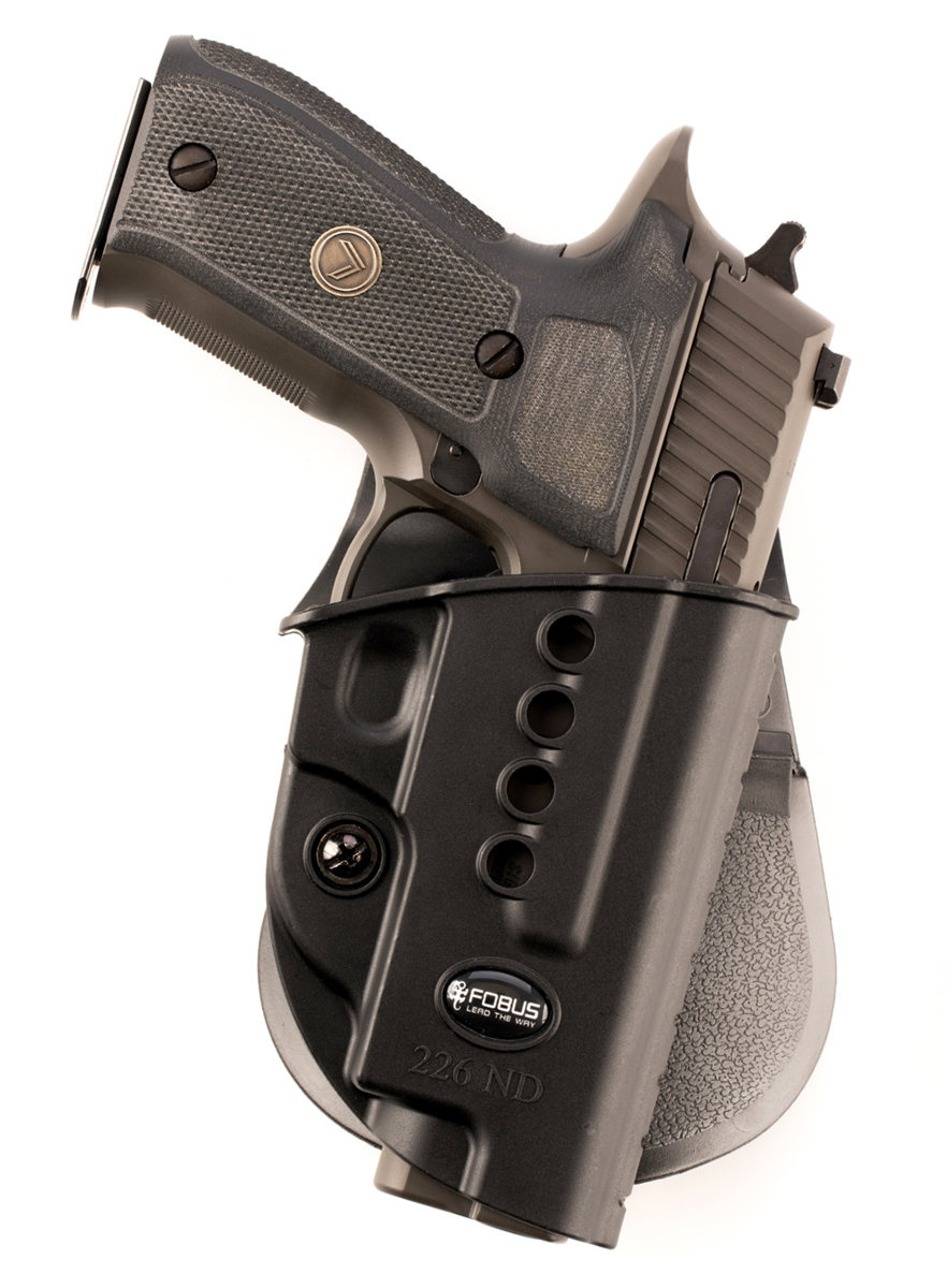 226ND BH ND RT, kabura otwarta Fobus, typ ND (występuje pod numerami 21ND oraz 226ND). Do pistoletów Sig Sauer: P220, P226, P226 MK25, P227, P228, P245, P225 (z szyną). Norinco: NC226. RX18 Polymer wykonana metodą wtryskową z odpornego na zarysowania, udar oraz ekstremalne temperatury tworzywa sztucznego o dużej gęstości.
