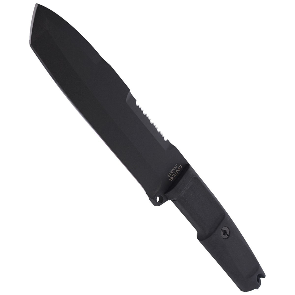 Ekstremalnie wytrzymały, wszechstronny nóż z głownią wytrzymująca obciążenia na zginanie z siłą 150 kg bez obaw, że pęknie. Łatwy w ostrzeniu kształt tanto zachowuje wysoką ostrość krawędzi tnącej oraz zdolność penetracji bez względu na intensywność zużycia. Dzięki swojej wadze i wyważeniu na głownię Ontos Black jest doskonałym nożem do wykorzystania na polu walki oraz nadaje się do ciężkich prac polowych. Solidna rękojeść, prosta w wymianie w przypadku uszkodzenia.