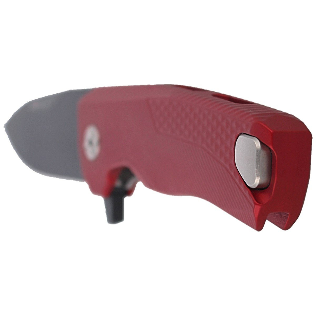 Rękojeść - w modnym kolorze czerwonym. Wykonana z pojedynczego bloku aluminium Ergal obrobionego zgodnie z technologią Solid® Knife. Przy zastosowaniu obrabiarek CNC uzyskano lekki, monolityczny szkielet (korpus) o najwyższej wytrzymałości, będący solidnym elementem konstrukcyjnym. Okładziny z antypoślizgową teksturą dla lepszego uchwytu.