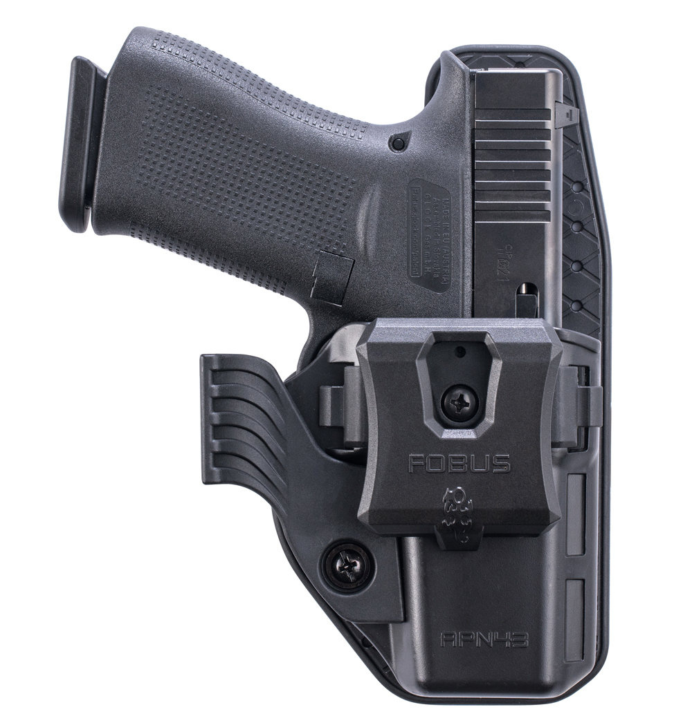APN43 niskoprofilowa prawo / lewostronna kabura otwarta izraelskiej firmy Fobus typu FIT (dedykowana do broni). APN to kabura wewnętrzna IWB (Inside the Waist Band) zaprojektowana do skrytego noszenia po wewnętrznej stronie spodni, mocowana zaczepianym o pas hakiem J Hook lub kabura zewnętrzna typu OWB (Outside the Waist Band) przystosowana do standardowego przenoszenia na pasie. Bardzo trwała i lekka, doskonale wyprofilowana dla maksymalnego komfortu, świetnie przylega do sylwetki pozwalając na skryte przenoszenie broni, niezwykle wygodna podczas codziennego noszenia w ukryciu, wentylowana, można ją myć w całości. Przystosowania kabury zarówno dla prawo jak i leworęcznych użytkowników bez żadnych narzędzi.