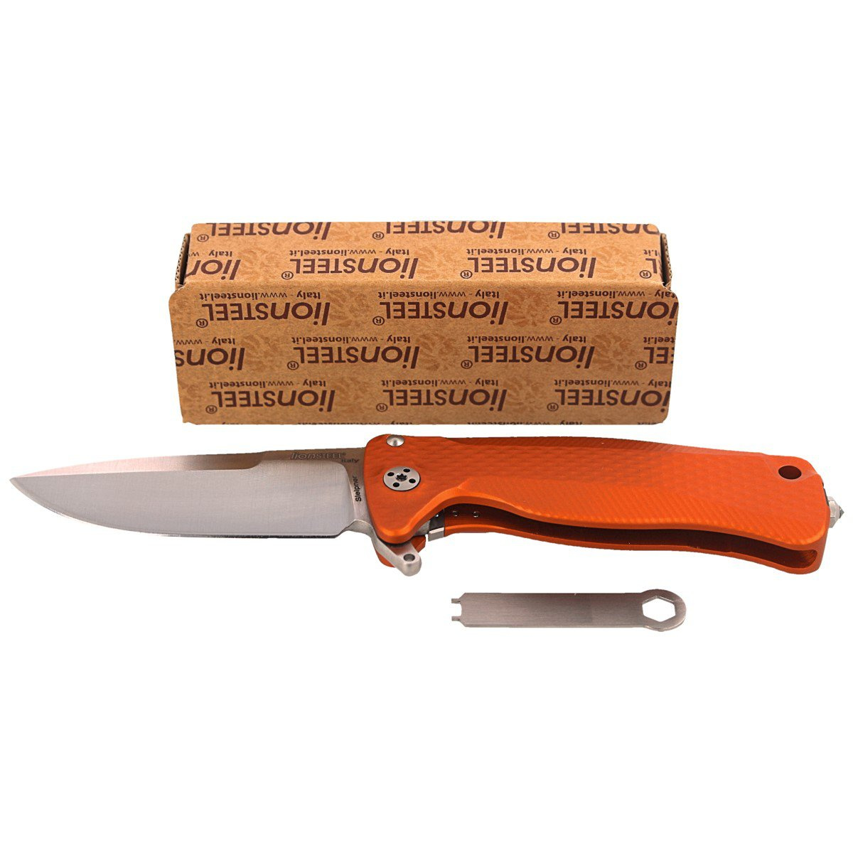 - SR22A Orange Aluminium, Satin Blade folder włoskiej manufaktury LionSteel. Mniejsza wersja noża SR11, który był ewolucją historycznego modelu SR-1, zdobywcy nagrody na targach Blade Show. Lekki, wytrzymały folder EDC z ekskluzywną technologią Solid Knife.