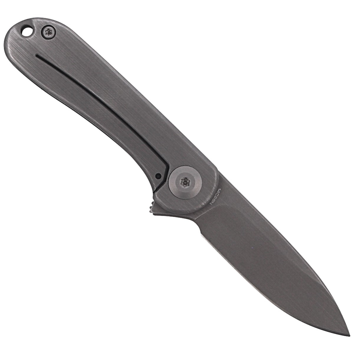 Głownia - typu drop point z szarym ręcznie polerowanym wykończeniem Gray Hand Rubbed. Wydatny brzusiec wydłuża długość krawędzi tnącej w stosunku do długości klingi zbiegając się w kierunku ostrego jak igła czubka noża. Niewielka grubość ostrza w połączeniu z wysokim wklęsłym szlifem (Hollow Grind) daje doskonałe właściwości tnące połączone z wysoką wytrzymałością. Ceramiczne łożyska kulkowe wspomagają płynną pracę mechanizmu otwierającego klingę, którą można otworzyć za pomocą szybkiej płetwy flippera (index-finger flipper). Po otwarciu płetwa tworzy mini-gardę zapobiegającą ześlizgnięciu się dłoni na ostrze. Mechanizm blokady frame lock.
